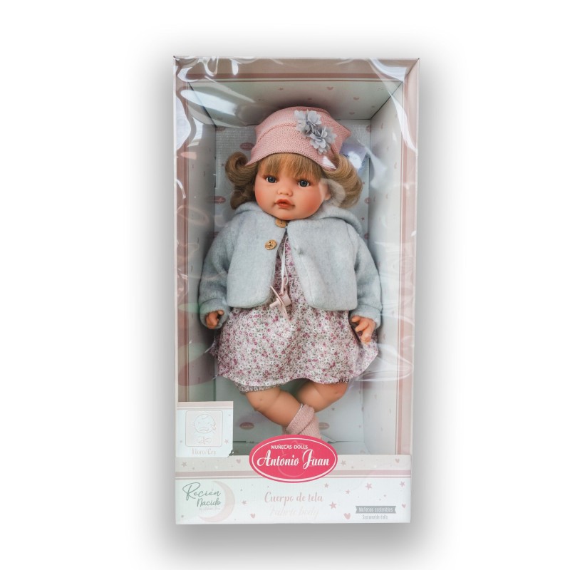 Jeśli mała kolekcjonerka wyjątkowych lalek marzy o idealnym do przytulania, przebierania i czesania bobasie, blondynka o imieniu Beni z pewnością wzbudzi zachwyt. Model 16277 z miękkim brzuszkiem, od renomowanego producenta Antonio Juan ma 42 cm wysokości i przypomina prawdziwe dziecko. Po wyjęciu smoczka płacze i mówi: mama, papa. Stale otwarte, niebieskie oczy o głęboki spojrzeniu opatrzone są długimi rzęsami i delikatnie malowanymi brwiami.