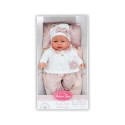 Ślicznie wyglądający, winylowy bobas z miękkim brzuszkiem posiada wyrzeźbione włoski oraz delikatnie malowane brwi, usta, paznokcie i fałdki. Bimba 14363 od marki Antonio Juan ubrana jest w: