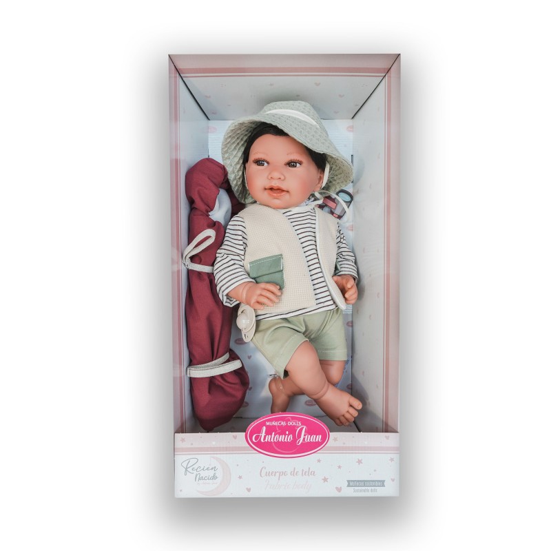 Jeśli chcesz podarować dziecku jedyną w swoim rodzaju, bezpieczną i luksusową zabawkę, warto przyjrzeć się bliżej hiszpańskiej lalce o imieniu Pipo. Chłopiec zaprojektowany został dla młodych miłośników wycieczek. Uroczy, winylowy bobas z miękkim brzuszkiem ma wzrost 42 cm i wagę zbliżoną do prawdziwego noworodka – 1520 g. Model 33363 projektu renomowanej marki Antonio Juan zachwyca dopracowanymi detalami, realistycznym wyglądem, przyjemnymi w dotyku ubrankami oraz akcesoriami o unikalnym designie.