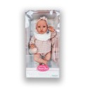 Lalka hiszpańska 33002 marki Antonio Juan to marzenie każdego dziecka, uwielbiającego zabawę w odgrywanie ról. Autentyczny wygląd i waga bobasa pozwalają z łatwością wcielić się w rolę troskliwego rodzica. Erika ubrana jest w oryginalnie zaprojektowaną, biało-różową bluzeczkę w modną kratkę. Elegancji dodaje biała wstawka z falbanką tuż przy dekolcie. Outfit dopełniają krótkie pudrowe spodenki oraz opaska na głowę. Strój z łatwością można zdjąć, ponieważ posiada on z tyłu wygodne zapięcie na rzep. W zestawie znajduje się także plastikowa butelka oraz przypinany smoczek na łańcuszku a także kocyk do przewijania.