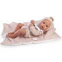 W całości wykonany w Hiszpanii luksusowa winylowa dziewczynka zapakowana jest w firmowe, biało-różowe pudełko ozdobne z wieczkiem. Może ono posłużyć także jako łóżeczko dla bobasa.