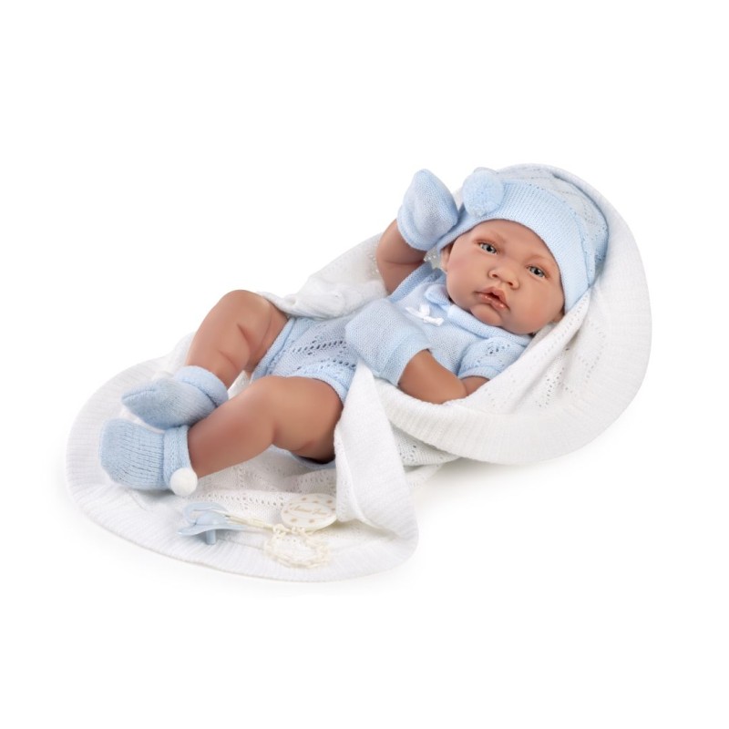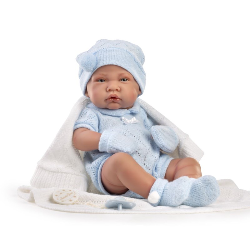 Chłopczyk Nino AJ50063 hiszpańskiej marki Antonio Juan uzupełnia kolekcję lalek z zaznaczoną płcią. Lalka ma 42 cm wysokości i została tak dokładnie odwzorowana, aby przypominała prawdziwego chłopca. Dzięki materiałowi z jakiego został stworzony Nino - winylu bobasa można zabrać na wspólną kąpiel.