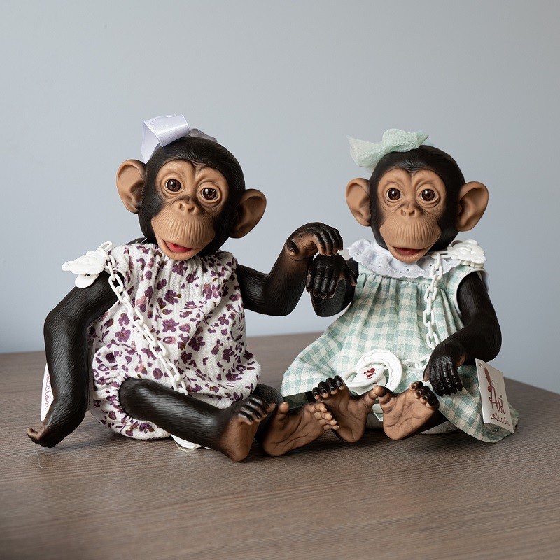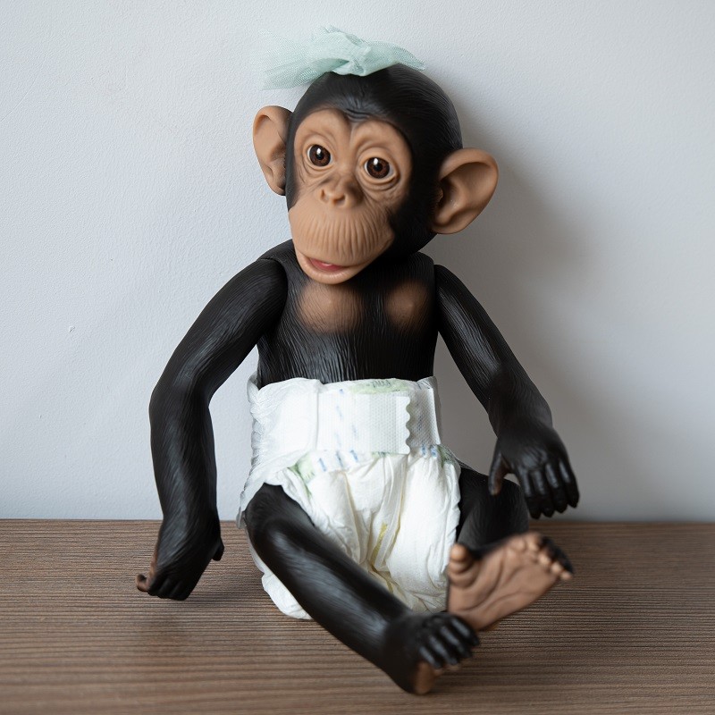 Zwracająca uwagę realistycznym wyglądem, dopracowana w najdrobniejszych detalach małpka renomowanej hiszpańskiej marki Asi wykonana została z miękkiego, przyjemnego w dotyku winylu. Zwracają uwagę brązowe oczy o głębokim spojrzeniu. Kończyny można ułożyć dowolnie. Głowa jest również ruchoma, dzięki czemu szympans może przyjmować różne pozycje.