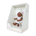 Pragniesz kupić dziecku unikalną lalę, idealną do przebierania, kąpania i zabaw w odgrywanie roli troskliwej mamusi? 21-cm, czarnoskóry bobas ma na sobie zapinany na rzep, biały, bawełniany trykot baletowy w piękny wzór roślinny. Zaprojektowany dla dzieci w wieku od 3 lat, został w całości ręcznie wykonany w Hiszpanii. Zachwyca dopracowanym wyglądem i dbałością o każdy szczegół wyglądu niemowlaka. Wyrzeźbione na przyciemnionej główce włosy, lekko zaróżowione policzki, fałdki, linie papilarne, zaznaczona płeć sprawiają, że lalka wygląda jak prawdziwe dziecko. Wysokiej jakości, miękki winyl przypomina w dotyku delikatną skórę bobasa.