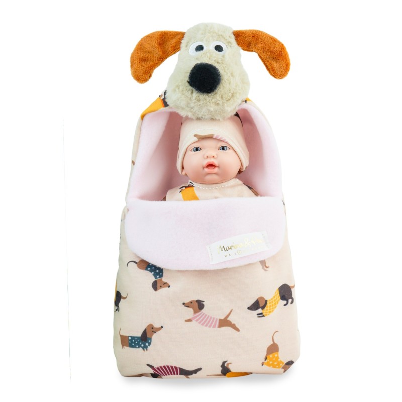 Uroczy 21-cm bobas z serii Golosinas to wyjątkowa propozycja od producenta lalek hiszpańskich - Marina & Pau. Zaprojektowany specjalnie dla najmłodszych wielbicieli piesków. Dostępny jest w zestawie z ciepłym śpiworkiem ze słodką główką szczeniaczka. Dziewczynka jest idealna do przebierania, kąpania i zabaw w odgrywanie roli troskliwej opiekunki. Ubrana jest ręcznie szyty, wzorzysty strój, który można z łatwością zdjąć.